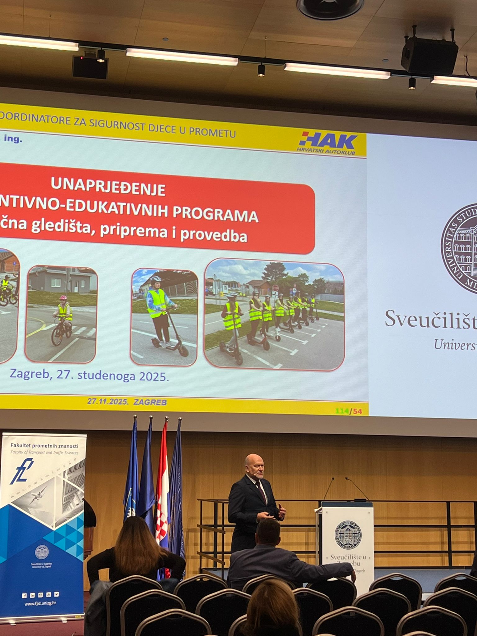 U svečanoj dvorani Sveučilišta u Zagrebu 27. studenog 2025. godine okupilo se više od 300 koordinatorica i koordinatora za sigurnost djece i učenika u prometu, koji su prisustvovali državnom stručnom skupu pod nazivom „Organizacija i provedba prometne edukacije učenika“. Skup je organizirao Fakultet prometnih znanosti Sveučilišta u Zagrebu u suradnji s Ministarstvom unutarnjih poslova i Agencijom za odgoj i obrazovanje s ciljem kontinuiranog jačanja kompetencija koordinatora iz osnovnih škola te unapređenja prometne sigurnosti i kulture među učenicima.