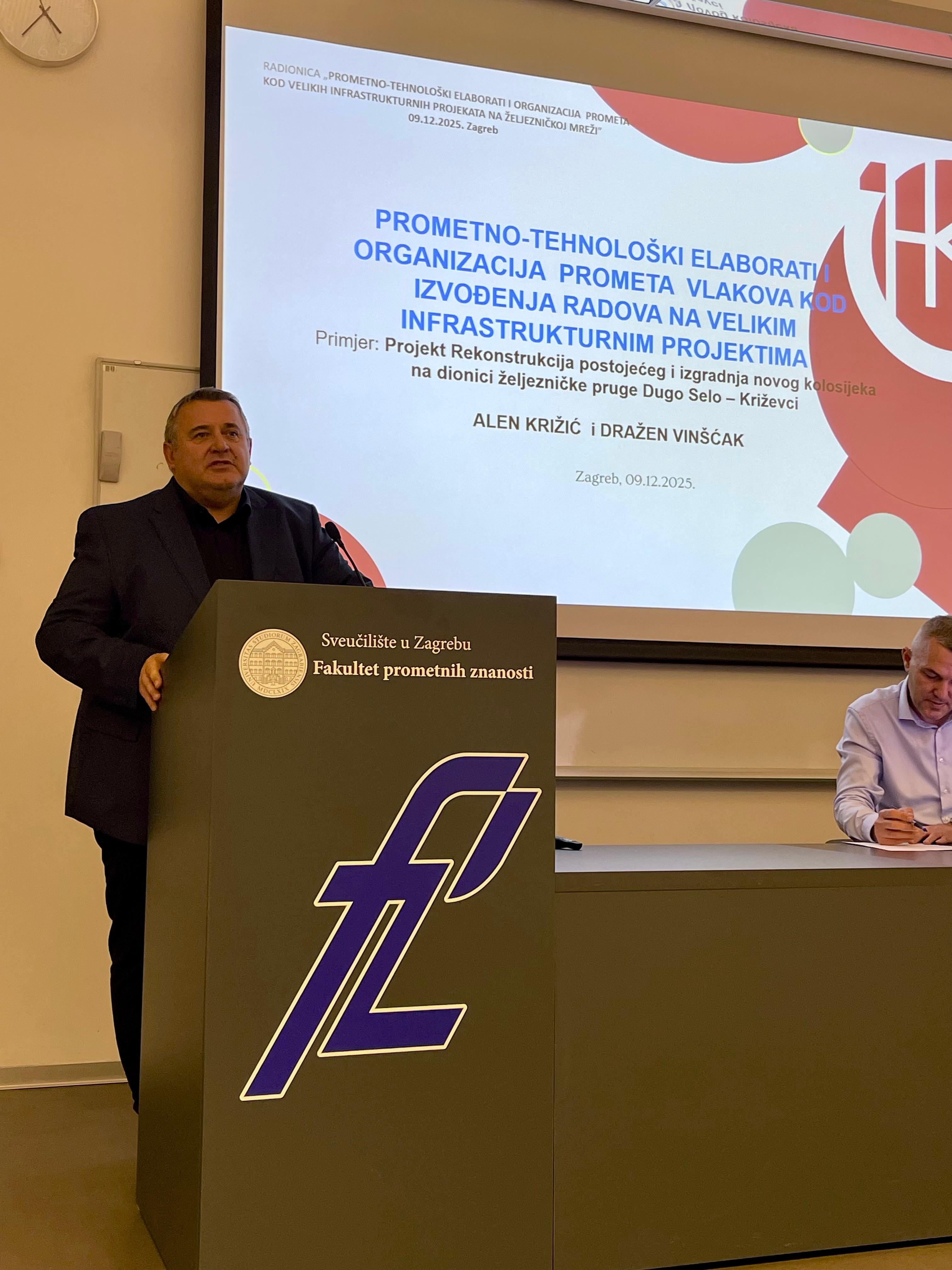 U organizaciji Hrvatska komore inženjera tehnologije prometa i transporta (HKIP) te Zavoda za željeznički promet Fakulteta prometnih znanosti 9. prosinca 2025. na Fakultetu prometnih znanosti u Zagrebu održana je stručna radionica pod nazivom „Prometno–tehnološki elaborati i organizacija prometa kod velikih infrastrukturnih projekata na željezničkoj mreži“. Radionica je okupila brojne stručnjake iz područja željezničkog prometa, projektiranja i infrastrukture, a posebna pozornost bila je posvećena izazovima organizacije prometa tijekom izvođenja velikih radova na mreži.
