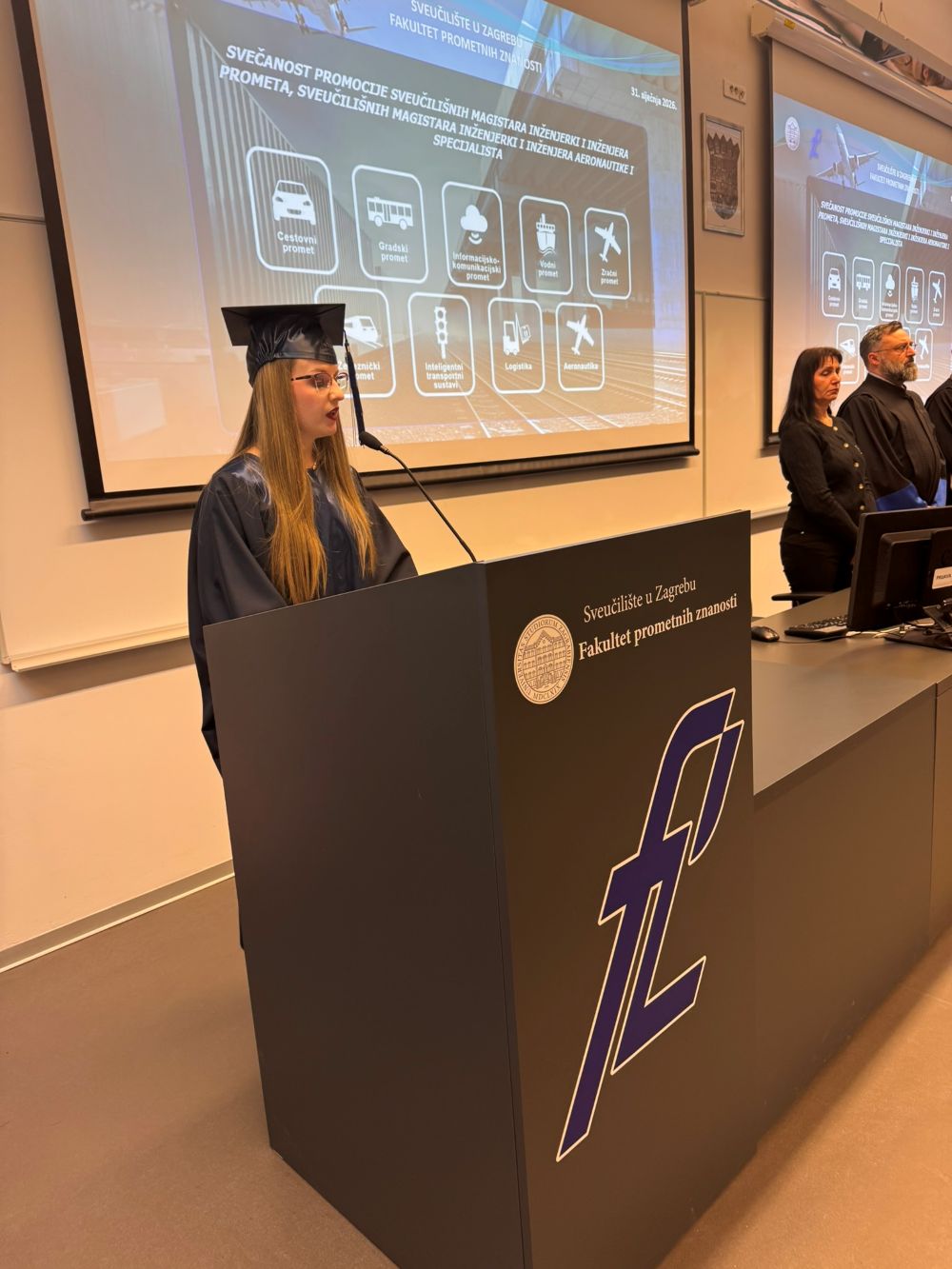Fakultet prometnih znanosti Sveučilišta u Zagrebu upućuje iskrene čestitke svim promoviranim sveučilišnim magistrima i magistrama inženjerima prometa i aeronautike te specijalistima na uspješno završenom studiju. Stečena znanja i kompetencije predstavljaju važan temelj za njihov daljnji profesionalni razvoj i doprinos razvoju prometnog, logističkog i aeronautičkog sustava, kako u Republici Hrvatskoj tako i u međunarodnom okruženju.
