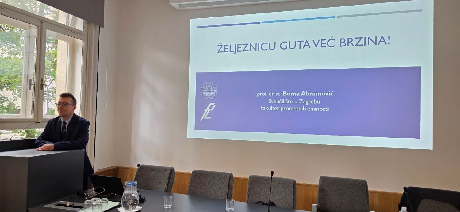 U uvodnom izlaganju skupu su se obratili nastavnici našeg Fakulteta: doc. dr. sc. Petar Feletar s temom Prvo povezivanje Hrvatske s europskom željeznicom 24. travnja 1860. godine i prof. dr. sc. Borna Abramović s temom Željeznicu guta već brzina!.