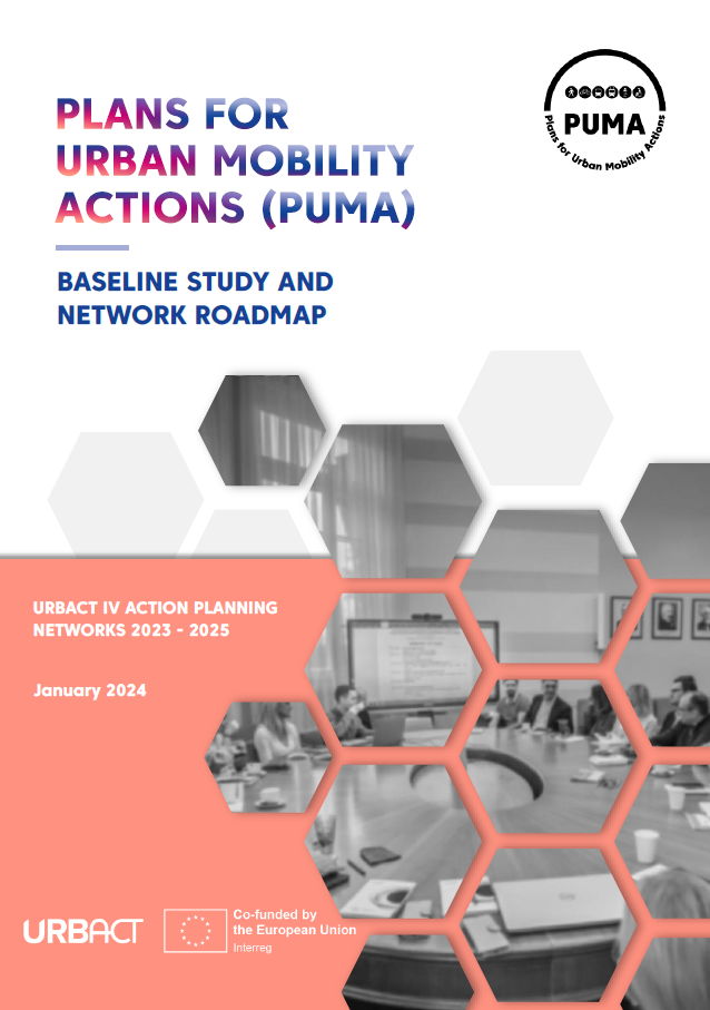 Download the PUMA Baseline Study and Network Roadmap, which provides the strategic starting point for the network by summarising the partner context, shared mobility challenges, policy framework, and the overall direction of cooperation and action planning within the project. It sets the foundation for the development of local Integrated Mobility Action Plans (IMAPs) and joint learning across the partnership.