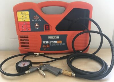 Manufacturer: NUAIR, Italija Serial number:2014. Description: Portable air compressor without expansion vessel. Technical characteristics: Power supply: 230 V, 50 Hz, Rated power: 1100 W, Max. pressure: 8 bar, Mass: 6,5 kg, Dimensions: 470*120*335 mm Purpose: The equipment is used to drive gyroscopic aircraft instruments in laboratory practice tasks.