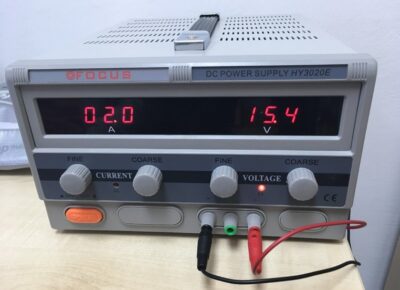 Manufacturer: Focus Serial number: 395237 Description: DC Regulated Power Supply HY3020E is very stable, regulated DC power supply allowing continuous adjustment of both the output voltage and output current levels. It allows parameter monitoring on 2 LED displays. Technical characteristics: Output DC Voltage Range: 0 – 30 V, Output DC Current Range: 0 – 20 A, Voltage indication accuracy: 1 %, Current indication accuracy: 2 %, Working environment: 0 – 40 °C, < 90 % relative humidity. Purpose: The equipment is used for generating of stable DC voltage.