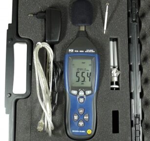 Manufacturer: PCE Instruments UK Ltd., Southampton, UK Serial number: 11123800 Description: Equipment also includes: DC 9V power supply, battery, telescopic tripod, installation CD, USB interface cable, screwdriver, wind protector, instruction manual and carrying case. Technical characteristics: Complies with: IEC61672-1 class 2 Accuracy: 1,4 dB Frequency range: 31,5 kHz – 8 kHz Purpose: The equipment is used for Sound Pressure Level (SPL) measurement with A or C frequency weighting and two different time constants: fast (125 ms) and slow (1s). Discreet sound recording with sampling frequency of 1-59 Hz, storing recorded samples in the internal memory, monitoring and PC-post processing is also possible.
